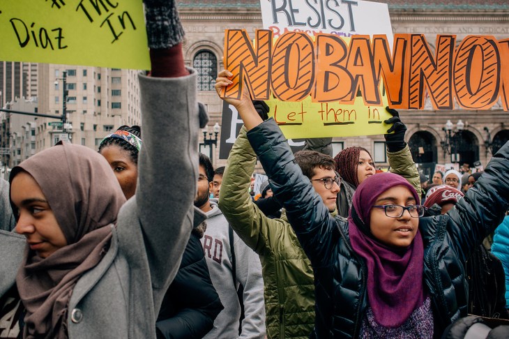 “No ban. No wall. Sanctuary for us all.”