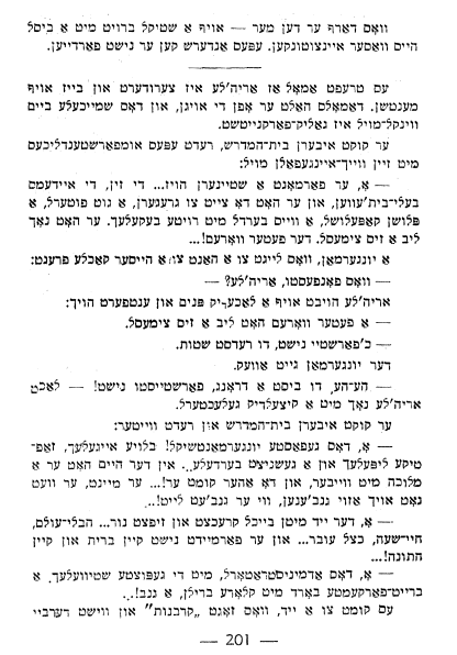 Sometimes Aryele gets agitated and ill-tempered. At such times his eyes remain open, and the corner of his smile turns virulent. He surveys the besmidrash, and the speech from his loose, sagging mouth becomes incomprehensible.