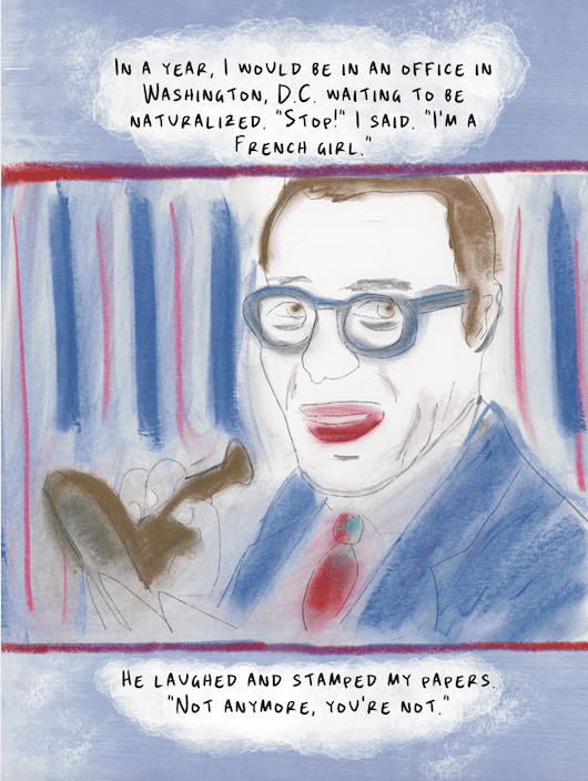 Not until the final chapter do we fully understand the meaning of the book’s title. Born in Fontainebleau, France, to American parents, Kercheval was naturalized as a U.S. citizen before moving to Florida. When her citizen papers are stamped in Washington D.C., she protests, “Stop…I’m a French girl!” A year earlier, she had slipped away from her mother during a walk in the forest of Fontainebleau and wandered off to the château where Napoleon had said farewell to his troops. The guards find her on his bed, and when her mother eventually claims her, they hesitate to hand over the “French girl” to an unmistakably American woman. Kercheval clearly has a profound connection to her very early years in France. (We aren’t told what year she moves to Florida, but we know she is walking and talking.) In one of the last lines of the memoir, she asks, “Is there a universe where I never left the forest?” In the final line, she asks if there is any way she could have gotten the lines around her mouth without “a lifetime of speaking French.” The book ends with a page of gray and green lines, representing a forest. I was not surprised to see this book made the Washington Post’s 10 Best Graphic Novels of 2024. This is not a book you want to check out from the library. This is a book you will want to purchase to give as a gift or keep to savor the enchanting drawings, over and over again.